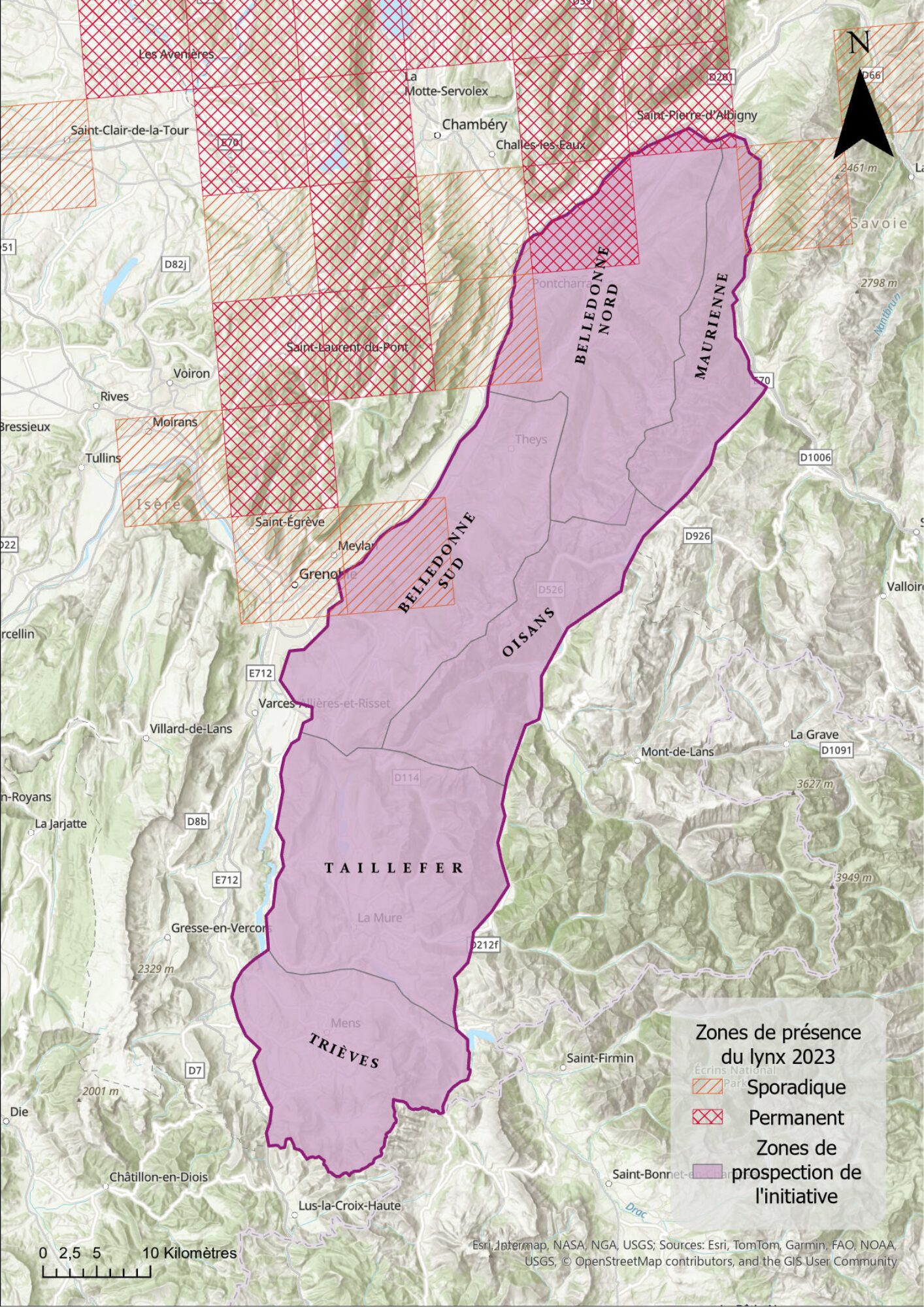Le massif de Belledonne représente un couloir potentiel pour la dispersion et l’installation de l’espèce vers les Alpes du Sud. Cette hypothèse repose sur la détection de plus en plus régulière d’indices de présence de lynx boréal sur le territoire par l’OCA.